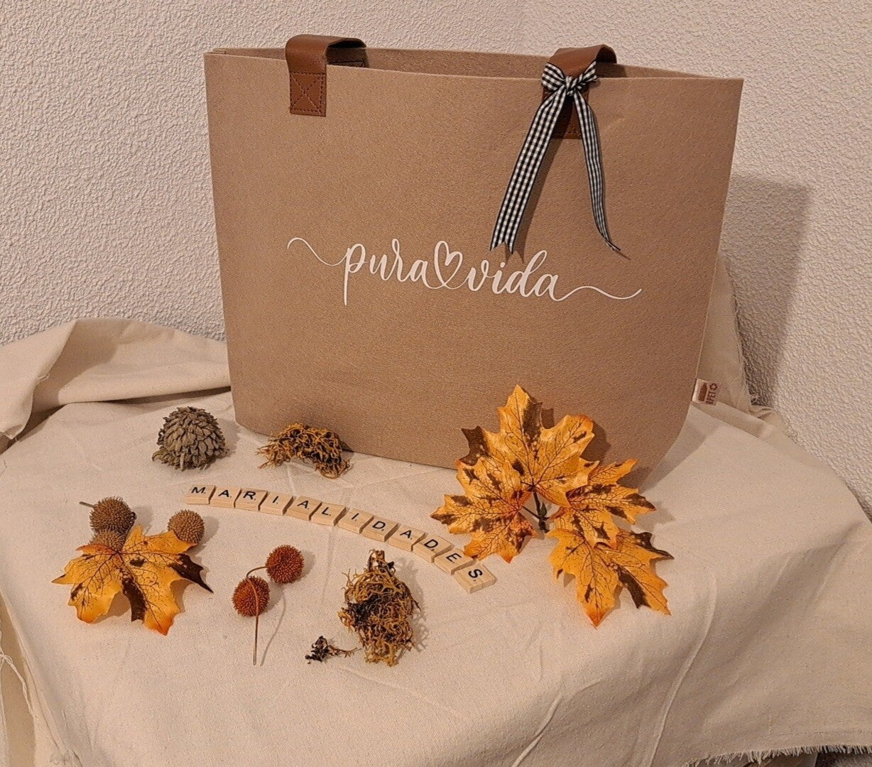 Crea un bolso a tu gusto añadiéndole el texto que más te guste. Material reciclado.